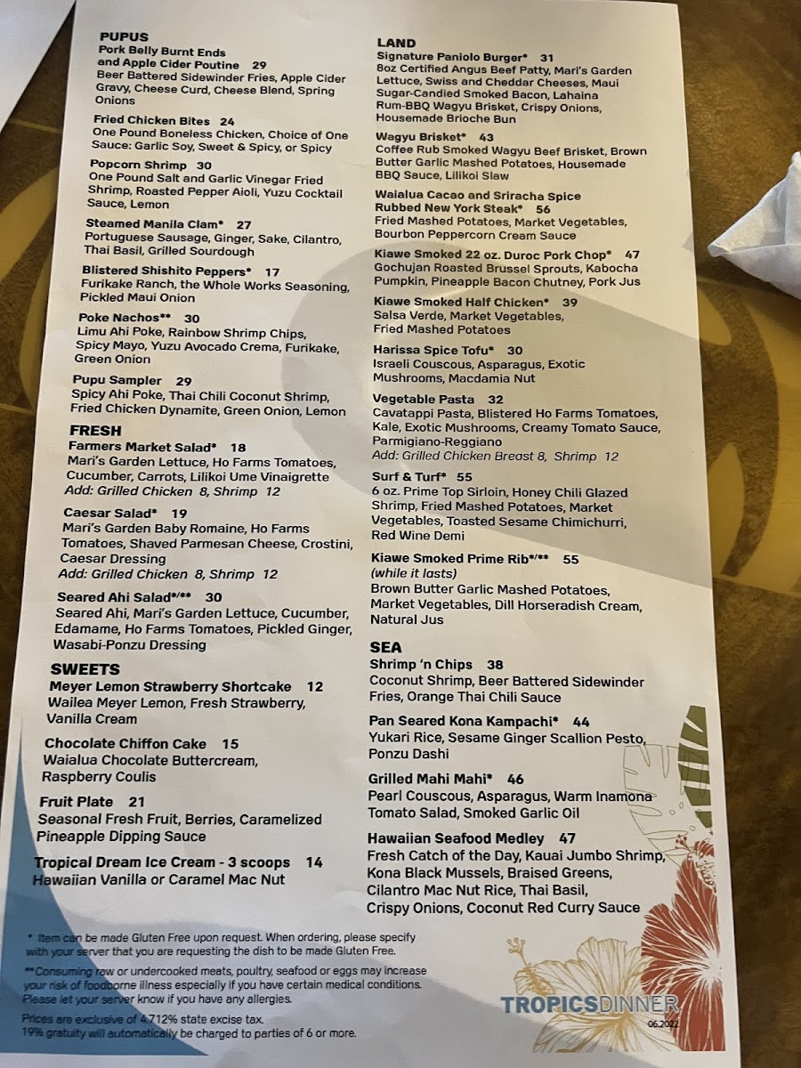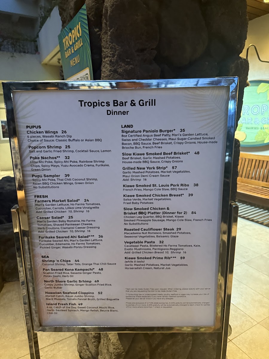 Whether you're looking to refuel after a day of beach adventures or simply want to unwind with friends over delicious food and drinks, Tropics Bar & Grill is sure to charm you with its exceptional offerings and laid-back vibe. Come for the food, stay for the view, and let the welcoming spirit of aloha envelop your dining experience!